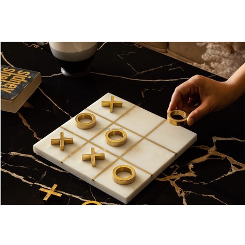 Diseño elegante mármol blanco oro Tic Tac Toe juego para regalar Tic Tac Toe juego de Interior para niños y juegos de mesa familiares