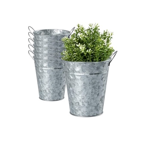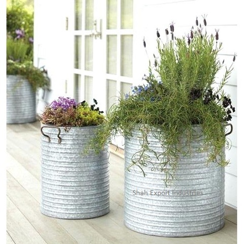 Maceta con acabado galvanizado redondo con mango para uso en interiores y exteriores, macetas de jardín y maceta para decoración del hogar