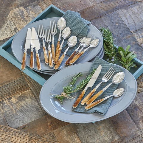 Juego de cubiertos de acero inoxidable de aspecto elegante con mango de hueso Antick para el hogar, mesa de comedor, juegos de cubiertos