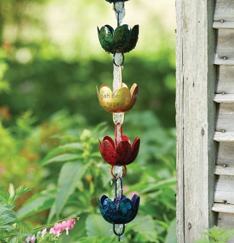 Cadena de lluvia de bajada de canalón colgante en cadena de lluvia de Metal de flor de lirio multicolor para decoración de jardín y exteriores
