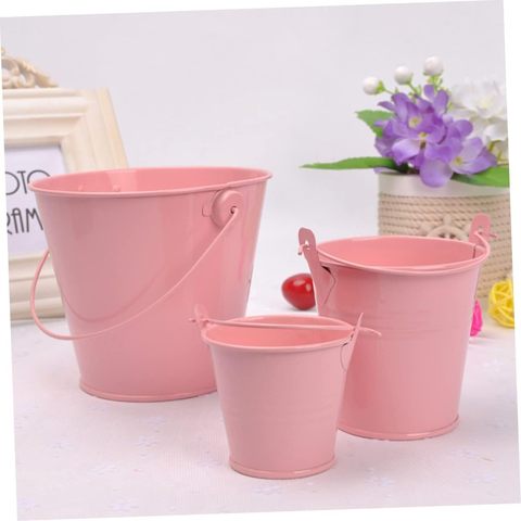 Cubo de maceta de metal de hierro de diseño moderno con mango Color Rosa multiutilizable para interiores y exteriores para el hogar y el jardín