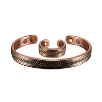 Pulsera de cobre puro sólido curativo hecho a mano y anillo de dedo a juego, brazalete de joyería para mujeres y hombres, accesorios