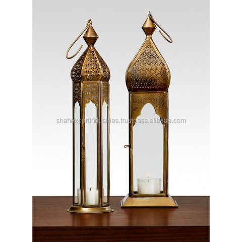 Brillantemente formado en Modish Único y elegante Boda Marroquí Oro Linterna Decoración del hogar Metal Hierro Vela Linterna