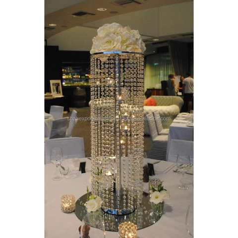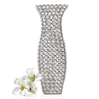 Jarrón de flores de Metal con cuentas de cristal plateado SHAH con arreglo de flores artificiales para decoración de mesa central de boda